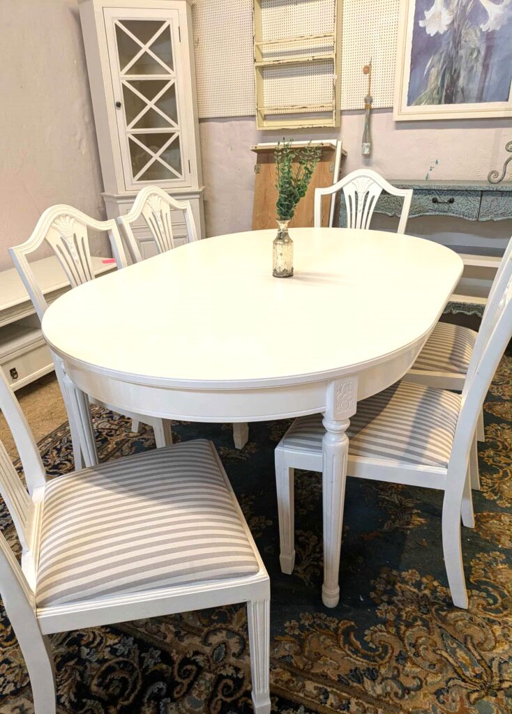 Udgivet den 27. oktober 2025 af Kirsten AndersenLækkert Brescia spisebord Et af de skønne “Brescia” borde med to plader til :-) L: 160/260 cm B: 110 cm H: 76 cm pris kr 2200.- De 6 flottestole koster samlet kr 2400.- 😉