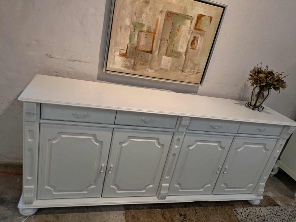 Udgivet den 30. november 2025 af Kirsten AndersenSmuk lang skænk Smuk ældre skænk med udskæringer :-) indvendigt hylde. L: 185 cm H: 82 cm H: 42 cm, pris kr 1700.- :-)